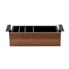 Este cajón inteligentemente diseñado incluye tres compartimentos internos más pequeños, ideales para almacenar materiales de oficina y objetos personales, así como un compartimento más