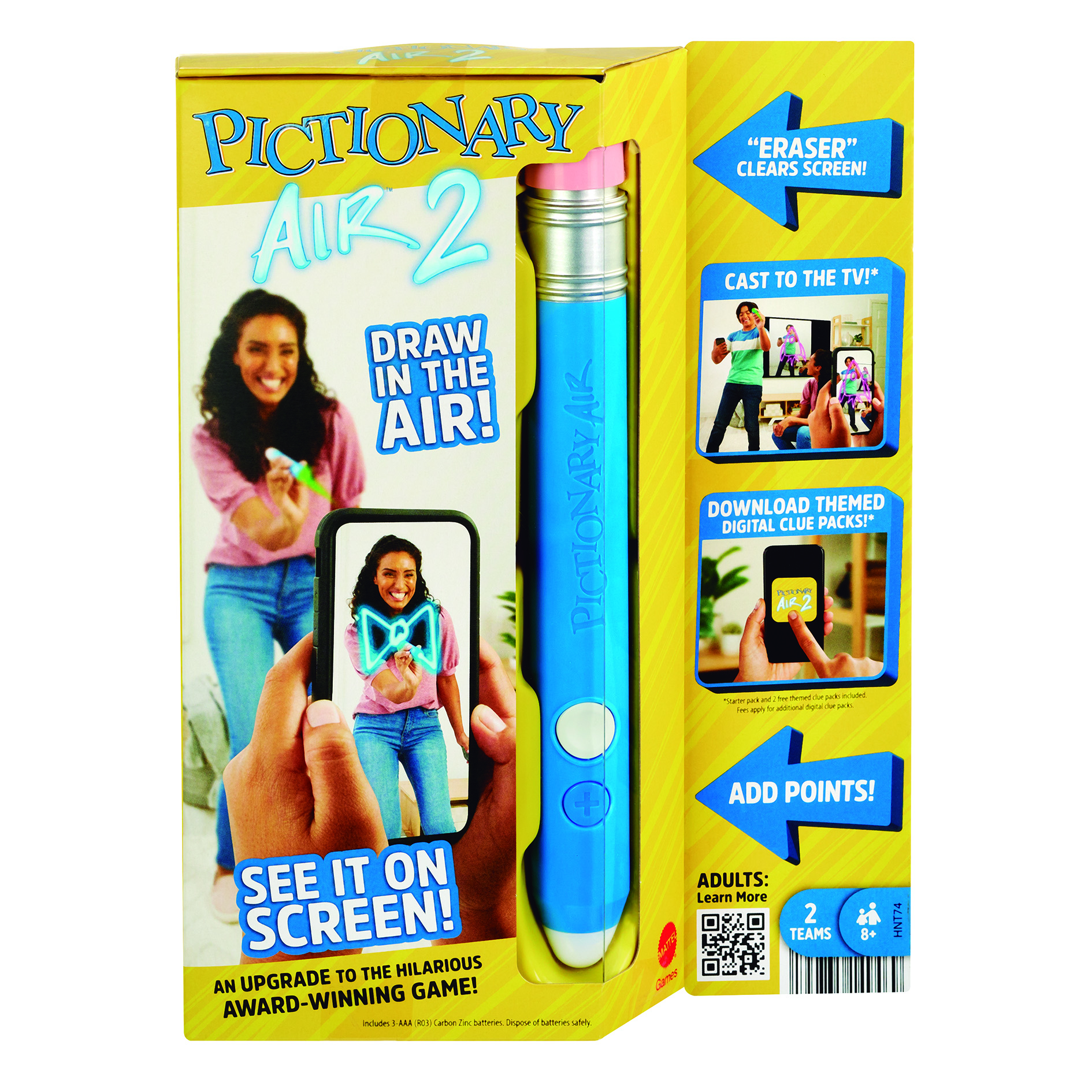 ¡El galardonado juego de dibujo original recibe un empujón de alta tecnología con Pictionary Air 2! Esboza pistas en el aire y visualízalas en un dispositivo o transmítelas al televisor. Ahora, con esta