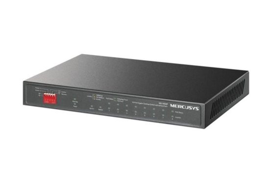 El **Mercusys MS110GMP** es un switch no gestionable de 10 puertos Gigabit diseñado para redes profesionales que requieren **alimentación PoE+ estable, fácil despliegue y funciones avanzadas de seguridad y rendimiento**. Su configuración plug & play, combinada con un diseño silencioso y sin ventilador, lo convierte en una solución ideal para **sistemas de videovigilancia, pequeñas oficinas y entornos que demandan estabilidad con mínimo mantenimiento**.